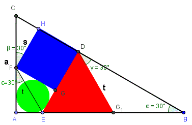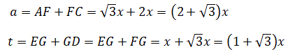 Per costruzione i triangoli rettangoli CHF, FAE, EGF sono congruenti e hanno gli angoli acuti di 30° e 60°. Se indichiamo
