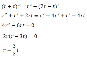 Pitagora al triangolo rettangolo GHL dove GL=r, GH=2r-t e LH=r+t e ricaviamo r in funzione di t.