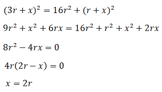 Applichiamo il teorema di Pitagora al triangolo rettangolo DFC dove DF=4r, DC=3r+x e FC=r+x e ricaviamo x in funzione di r.