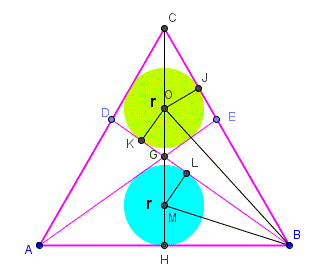 I due triangoli GKO e GML sono congruenti e nell'uguaglianza tra le aree avendo segni opposti possono essere eliminati, anche i triangoli BML e BHM