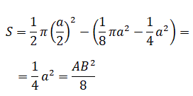 Inoltre, EF essendo il diametro del cerchio tangente ad AB e CD è uguale ad a. Calcoliamo l'area del segmento circolare togliendo