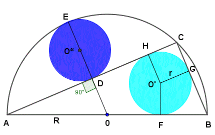 Sia O il centro del semicerchio e il segmento OD è perpendicolare al lato AC e quindi parallelo al lato BC. Il triangolo AOD è