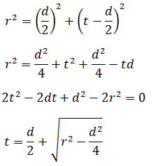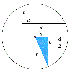 in modo da formare un triangolo rettangolo che ha per ipotenusa r e per cateti d/2 e t-d/2.
