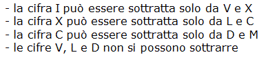 Una cifra di valore minore posta a sinistra di una cifra di valore maggiore si sottrae a quest'ultima tenendo presente che