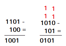 0 - 0 = 0; 1 - 0 = 1; (1)0 - 1 = 1 (con prestito di 1+1); 1 - 1 = 0