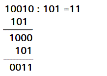 Nell'operazione di divisione i quattro possibili casi di divisione di due numeri binari di una sola cifra sono:
