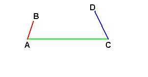 Proviamo allora a ridurre il segmento AC in modo che la sua lunghezza sia uguale alla somma degli altri due e vediamo se, in questo caso, riusciamo a formare un triangolo.