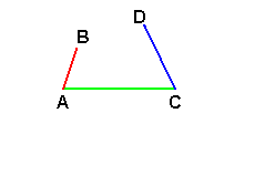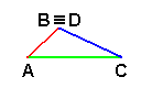 Ora, gli estremi liberi B e D descrivono due circonferenze che si incontrano in un punto che giace su AC. Ma in questa situazione AB e CD ricoprono perfettamente AC. Di consequenza anche con questi tre segmenti non riusciamo costruire un triangolo. Spesso è utile considerare questo caso come una situazione "limite" in cui il triangolo è talmente "schiacciato" da degenerare nella sovrapposizione dei tre lati. Possiamo renderci conto di ciò con tre strisce di cartoncino lunghe rispettivamente 22 cm, 10 cm e 12 cm e tre fermacampioni. E' possibile collegare consecutivamente le tre strisce solo se sono perfettamente allineate.