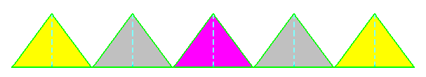 Otteniamo cosí un triangolo equivalente alla somma dei cinque triangoli. Questo triangolo ha la base e l'altezza rispettivamente uguali al perimetro e all'apotema del pentagono regolare. Questa trasformazione del pentagono regolare in un triangolo equivalente può essere applicata ad un qualsiasi poligono regolare. Pertanto possiamo affermare che: