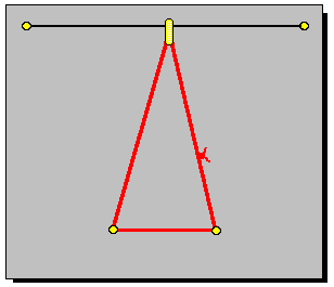 Questa constatazione può far nascere la domanda: in questa famiglia di triangoli equivalenti qual è quello che ha il perimetro minimo? Se tiriamo l'anello e poi lo lasciamo libero di scorrere lungo il filo vediamo che si riporta rapidamente sull'asse della base. In altre parole, l'anello si ferma quando si forma il triangolo isoscele.