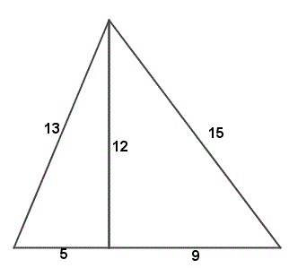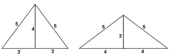 Otteniamo cosí due triangoli isosceli non rettangoli. Questi due triangoli isosceli sono eroniani, perchè l'area di ciascun triangolo è un numero intero, essendo la somma delle aree intere dei due triangoli pitagorici congruenti.