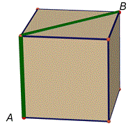 Consideriamo un cubo di lato unitario. Siano A e B due vertici opposti che non appartengono alla stessa faccia. Supponiamo di muoverci sulla superficie del cubo e chiediamoci: qual è il percorso più breve che unisce A con B? Il percorso indicato in figura è quello piè breve?