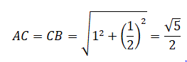 L'elastico attraversa lo spigolo DE in C che è il punto medio dello spigolo e i due tratti AC e CB sono questa volta congruenti. Con il teorema di Pitagora possiamo determinare AC e CB che sono lunghi rispettivamente