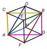Nella figura sono AC-CB, AD-DB, AE-EB, AF-FB, AG-GB, AH-HB. Questi cammini presi a due a due formano il contorno di una sezione quadrilatera equilatera, come ad esempio ADBG. Il quadrilatero ADBG è un quadrato? No, perchè le diagonali AB e DG non sono uguali. AB è uguale a √3 e DG è uguale a √2 e quindi il quadrilatero ADBG non è inscrittibile in una circonferenza. In conclusione possiamo dire che questo quadrilatero è un rombo.
