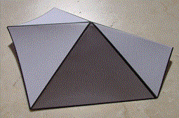 Tracciamo un poligono, ad esempio un esagono, e suddividiamolo in sei triangoli. Ora, rimuoviamo uno dei triangoli e pieghiamo il cartoncino lungo ogni lato e infine uniamo i due bordi.