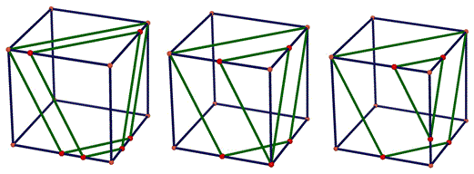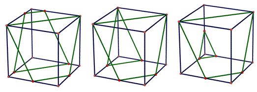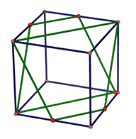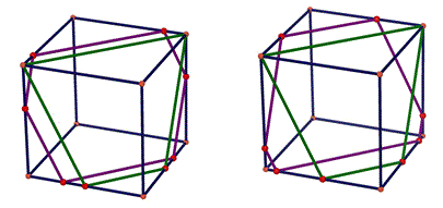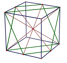 Congiungendo i punti corrispondenti dei due trapezi isosceli vedremo che questi segmenti si intersecano in uno stesso punto che è il punto medio di una diagonale del cubo.