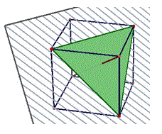 La prima sezione è un punto perchè il piano sezione tocca un solo vertice del cubo, quello comune a tre facce. Poi il piano interseca tre spigoli uscenti dallo stesso vertice e quindi la sezione del cubo è ovviamente un triangolo. Che tipo di triangolo? Un triangolo equilatero; il piano taglia i tre spigoli alla stessa distanza dal vertice comune. A mano a mano che spostiamo il nostro piano, parallelamente a se stesso, la sezione resta un triangolo equilatero ma con il perimetro e area crescente. Appare il triangolo equilatero massimo quando il piano passa per tre vertici del cubo. Il triangolo equilatero massimo ha per lati le diagonali delle tre facce.