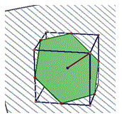 No. Otteniamo un esagono non regolare perchè il piano, ora, interseca non 3 ma 6 spigoli del cubo. Osservando attentamente questo esagono vediamo che ha i lati opposti paralleli e due terne di lati uguali, disposti in modo che due lati consecutivi abbiano lunghezze diverse. Muovendo ancora il piano gli esagoni assumono via via una forma sempre più vicina a quella di un esagono regolare. Infatti, in questi esagoni le differenze tra le lunghezze di due lati consecutivi diminuiscono progressivamente. Riusciamo ad ottenere una sezione esagonale regolare?