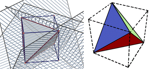 Fissiamo un vertice del cubo e su ciascuna faccia che lo contiene contrassegniamo il vertice ad esso opposto. Poi, congiungiamo tra loro i vertici contrassegnati e quello fissato all'inizio. Che solido otteniamo?