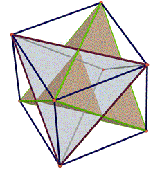 Gli spigoli della stella octangula si intersecano a coppie nei vertici di un ottaedro regolare.