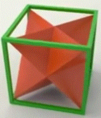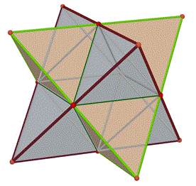Quale solido si ottiene dall'unione dei due tetraedri regolari inscritti in un cubo? Un poliedro composto regolare formato da 24 facce triangolare equilatere congruenti. Questo solido è descritto e rappresentato nella Divina proporzione di Luca Pacioli con il nome Octaedron elevatum. Successivamente fu riscoperto da Keplero e chiamato stella octangula.