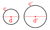 siamo certi che la lunghezza c della prima circonferenza sta al proprio diametro d come la lunghezza c' della seconda circonferenza sta al proprio diametro d' e quindi possiamo scrivere la proporzione: