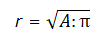 Se conosciamo l'area A, il raggio è dato da: