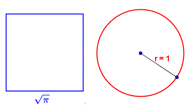 Fin dal V secolo a.C. i matematici dell'antica Grecia erano particolarmente affascinati dai problemi della quadratura di una figura piana. Il termine quadratura prevedeva la costruzione con riga non graduata e compasso di un quadrato avente area uguale a quella della figura piana. Per i greci la riga non graduata e il compasso erano gli strumenti prediletti perchè con essi si potevano utilizzare le due figure perfette, la linea retta e il cerchio. Utilizzando solo questi due strumenti i matematici greci furono in grado di realizzare molte costruzioni geometriche e soprattutto a quadrare qualsiasi poligono limitato da una spezzata rettilinea. Per 2400 anni si tentò in tutti i modi, senza successo, di quadrare anche il cerchio. Il problema della quadratura del cerchio si riduce a costruire esattamente Π con riga e compasso. Infatti, se il cerchio ha raggio unitario la sua area sarà A=Π e quindi il quadrato che ha la stessa area del cerchio dovrà avere per lato l=√Π.