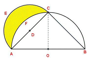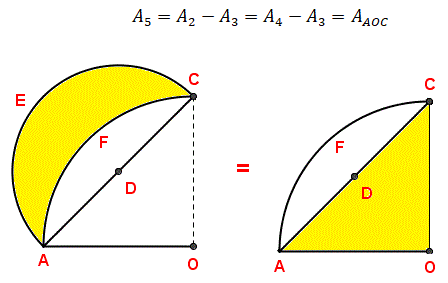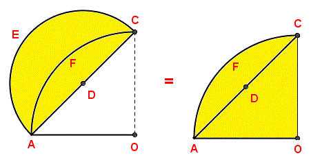 E quindi l'area della lunula è equivalente all'area del triangolo AOC. Essendo quadrabile il triangolo AOC
