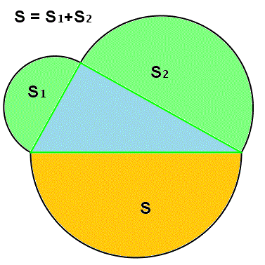 Il semicerchio costruito sull'ipotenusa è equivalente alla somma dei semicerchi costruiti sui cateti.