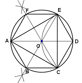 parti uguali e costruire i relativi poligoni regolari. Ecco ad esempio le divisioni della circonferenza in 3, 4, 5, 6, 8, 10 parti uguali e i relativi poligoni regolari inscritti nella circonferenza.