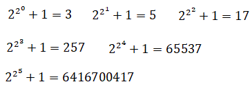 dove k è un numero intero non negativo e i fattori pi sono numeri di Fermat primi distinti. Fermat congetturò che i numeri del tipo:
