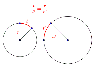 La lunghezza di archi circolari di raggio diverso, ma corrispondenti ad angoli al centro uguali, stanno tra loro come i rispettivi raggi.