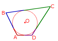 Esistono delle semplici condizioni per stabilire se un quadrilatero è inscrittibile in una circonferenza o circoscrittibile a una circonferenza. Ad esempio, il quadrilatero ABCD è inscritto in una circonferenza.