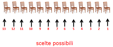 possibilità. Pertanto, per le prime due sedie, ci sono 13⋅12 diverse possibilità. Proseguendo, sulla terza