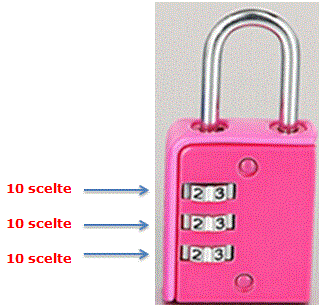 Il massimo numero di tentativi necessari per aprire il lucchetto coincide con il numero dei possibili raggruppamenti di tre