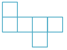 Quesito n° 7: Inserisci i numeri da 1 a 6, senza ripetizioni, nei quadrati di questo sviluppo piano di un cubo in modo che una volta ricomposto il cubo la somma di due numeri sulle facce opposte sia sempre la stessa.