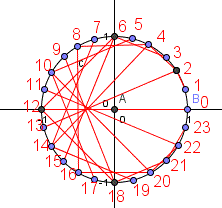 Tracciamo la circonferenza di raggio r=1 e centro in A (0, 0) nel piano cartesiano. Prendiamo il punto B (1, 0) e dividiamo la circonferenza in 24 archi uguali segnando i punti 0, 1, 2, ..., 23. Tracciamo i segmenti unendo 1 con 2, 2 con 4, 3 con 6, ..., 11 con 22. Poi uniamo 12 con 0, 13 con 2, 14 con 4, ..., 23 con 21. In pratica ogni punto è unito con il suo doppio nell'aritmetica modulo 24. Tutti questi segmenti essendo tangenti a una cardioide danno luogo a una cardioide. Possiamo anche dire che i segmenti inviluppano la cardioide o che la cardioide è l'inviluppo dei segmenti. Aumentando i punti sulla circonferenza si può evidenziare un inviluppo migliore della curva