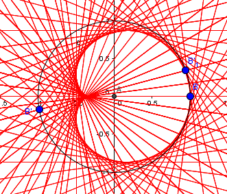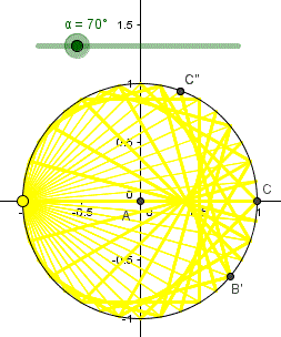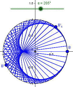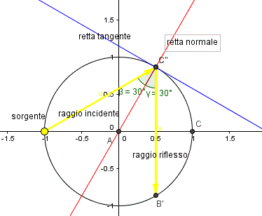 Possiamo considerare la circonferenza come uno specchio circolare con una sorgente di luce sulla circonferenza stessa. Un raggio di luce emesso dalla sorgente quando interseca la circonferenza viene riflesso secondo le leggi della riflessione: