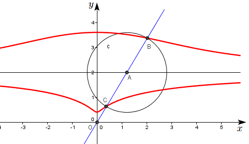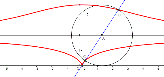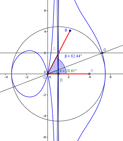 -Indichiamo con G il punto di intersezione tra la concoide e la retta parallela all'asse x passante per il punto C.
