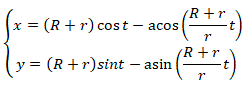 Le equazioni generali delle epicicloidi che contemplano sia le accorciate che le allungate sono: