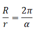 Le lunghezze dei due archi sono uguale perchè la circonferenza mobile non striscia ma rotola su quella fissa. Le rispettive lunghezze di questi due archi si ottengono dal prodotto dei raggi per gli angoli al centro sottesi dagli archi e espressi in radianti. Per cui si ha: