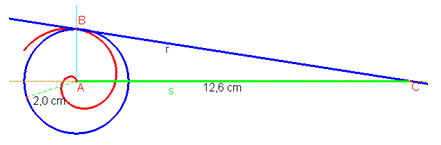 Questo problema è riconducibile alla rettificazione della circonferenza, cioè alla possibilità di costruire un segmento che abbia la stessa lunghezza di una circonferenza. Per far ciò prese in considerazione la prima spira della spirale e tracciò il primo cerchio, cioè il cerchio di centro A e raggio AB. Poi tracciò la tangente alla spirale nel punto B e la retta s perpendicolare ad AB in A e indicò con C il punto di intersezione tra r e s. Infine dimostrò che la lunghezza del segmento AC era uguale alla lunghezza della circonferenza di raggio AB. Come si vede dalla figura, seguendo questo procedimento la lunghezza della circonferenza di raggio 2 cm risulta essere di 12,6 cm che rappresenta una buona approssimazione per eccesso con una sola cifra decimale.