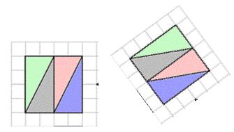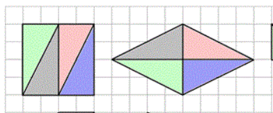 Ad esempio, sono equiscomponibili ed equivalenti le seguenti figure perchè sono suddivise nelle stesse parti; quattro triangoli rettangoli congruenti.