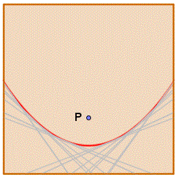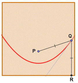 Con questo procedimento il punto scelto P è il fuoco della parabola mentre il bordo inferiore del quadrato è la direttrice della parabola e la distanza del punto Q (appartenente alla parabola e alla retta tangente) dal punto P (il fuoco) è uguale alla distaza tra Q e R (un punto sulla direttrice). Si può vedere che i punti P e R sono simmetrici rispetto alla piega.