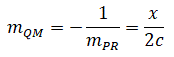 e la pendenza della retta QM. Essendo QM perpendicolare a PR il prodotto delle loro pendenze è uguale a -1 pertanto: