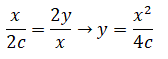 Che è l'equazione della parabola con il vertice nell'origine e il fuoco sull'asse delle y.
