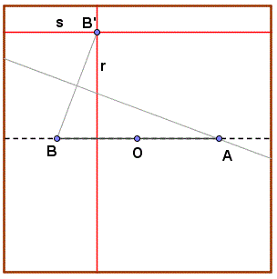 Pieghiamo il foglio in modo da ottenere il punto B' simmetrico di B sulla retta r e apriamo il foglio. Pieghiamo ancora il foglio in modo da ottenere la retta s parallela a AB.