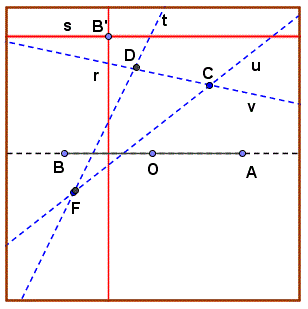 Pieghiamo il foglio lungo la retta u in modo da portare A sulla retta s e B sulla retta r e apriamo il foglio.