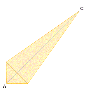 Pieghiamo all'indietro il vertice C come si vede in figura.